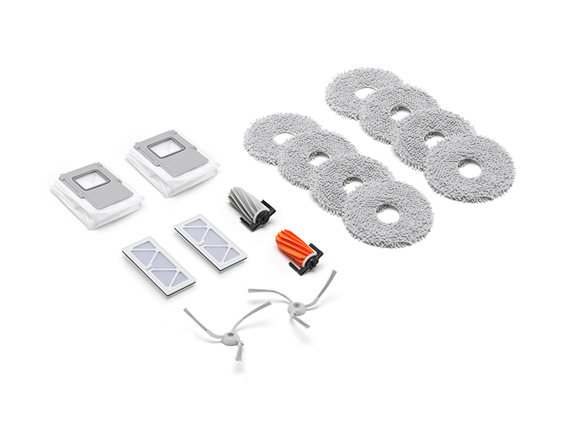 The ROMO Accessory Kit includes roller brushes, side brushes, mop pads, dust bags, and high-efficiency filters for up to six months of use.